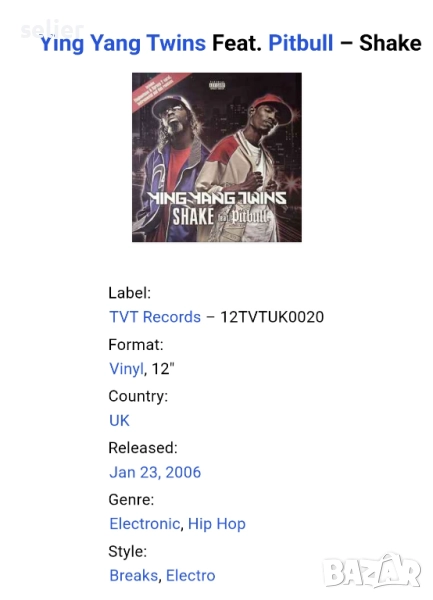 Предлагам ви и горещо препоръчвам тази плоча-макси сингъл: Ying Yang Twins Feat. Pitbull ‎– Shake M
