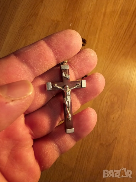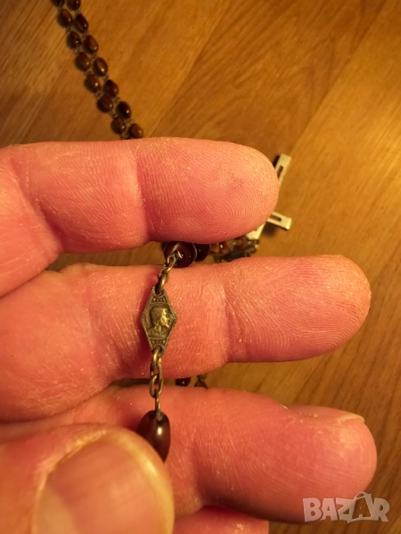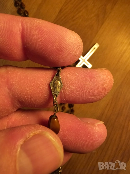 Стара молитвена броеница с дървен кръст разпятие богородица и Исус Христос за да те пази и закриля.