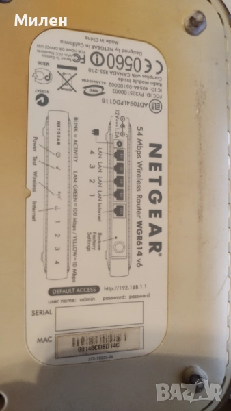 Работи без забележка, използван до последно. Netgear WiFi router model WRG614 v6