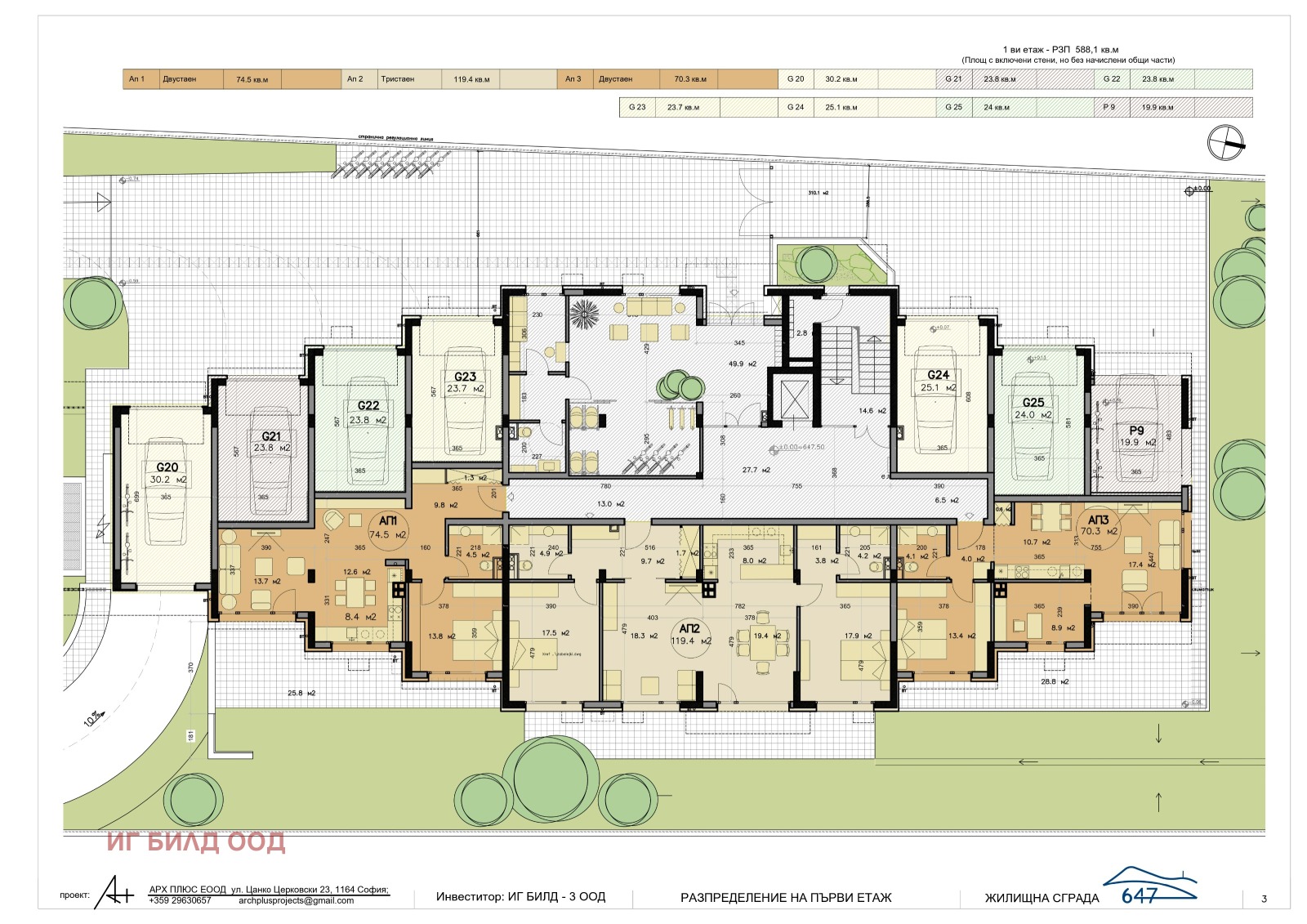 Потапяш се в уединението и комфорта на новия си дом. Със собствена градина към апартаментите. Спиращата дъха гледка към планините Витоша и Стара планина и хубав изглед към града. Ще бъдат монтирани блиндирани врати, дограма алуминиев профил със стъклопакет нискоемисионно стъкло, стълбища и общи части-подова настилка гранит, тавани и стени латекс,декоративни мазилки. ЛЕД осветление във всички общи части, гаражи- входна врата термоизолирана с дистанционно управление, подгряване на рампата. Подът на гаражите ще бъде шлайфан бетон. Електро инсталации с дефектнотокови защити, окабеляване за телевизия, интернет, домофони с контрол на достъпа и изпълнена разводка за климатици и отоплителни инсталации на газ без монтирани котлета. Богато озеленен двор. Доказан строител. В снимките към обявата има разпределения. Посетете ни и на https://www.facebook.com/pg/IGbuildSF