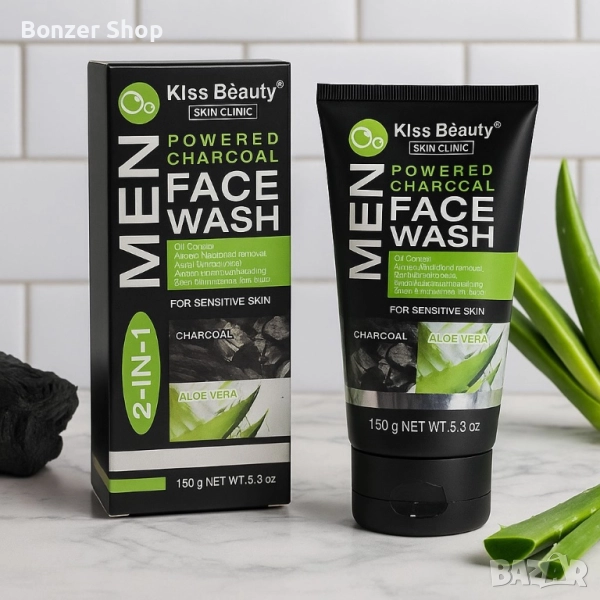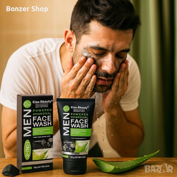 Дълбокопочистващ гел за лице с алое и черен въглен за мъже → Обява 51841714
