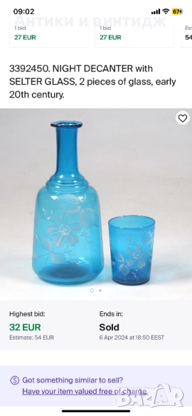 Античен декантер за вода, от витриолно стъкло → Обява 51841814