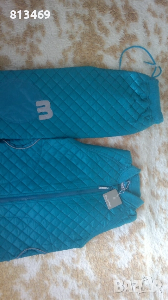 Комплектът е неразличим от нов. В отлично състояние. Страхотно предпазва от вятър и влага. Особено удобен за игра на открито със сняг, непромукаем. Дизаин 80 74 105. Стил RITZ 05. Цвят 71530. Размер 8/128. Със светлоотразители.