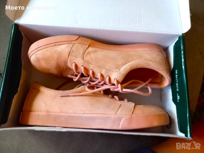 Оригинални дамски кецове Ralph Lauren, модел REABA-SK-VLC BAL SLPR. Изработени от eстествен велур в нежен пастелено розов цвят – изчистени, стилни и елегантни. Подходящи за пролетно-летния сезон, лесни за комбиниране както с дънки, така и с рокля. Продават се с оригиналната си кутия.