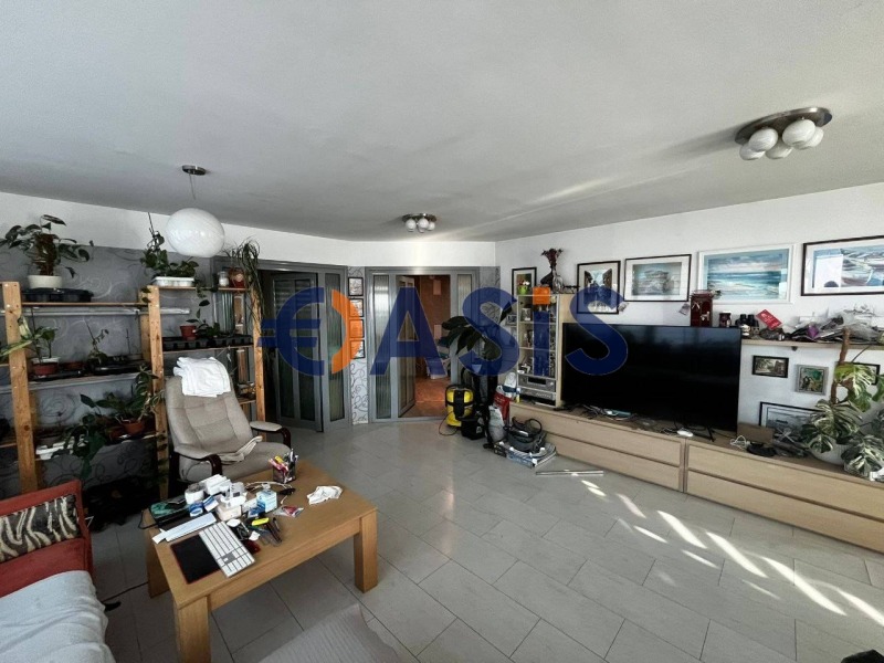 Жилищното помещение се състои от просторна всекидневна с кухненски бокс ,2 спални ,2 бани с тоалетни, голяма тераса .Тераса с площ от 80 кв. м. превърната в зимна градина . Просторната баня разполага с баня . За отопление има камина и парно . Жилището се намира в обикновена къща без такса поддръжка, в центъра на Новия Несебър, подходящо за целогодишно живеене ,идеално за отдаване под наем .