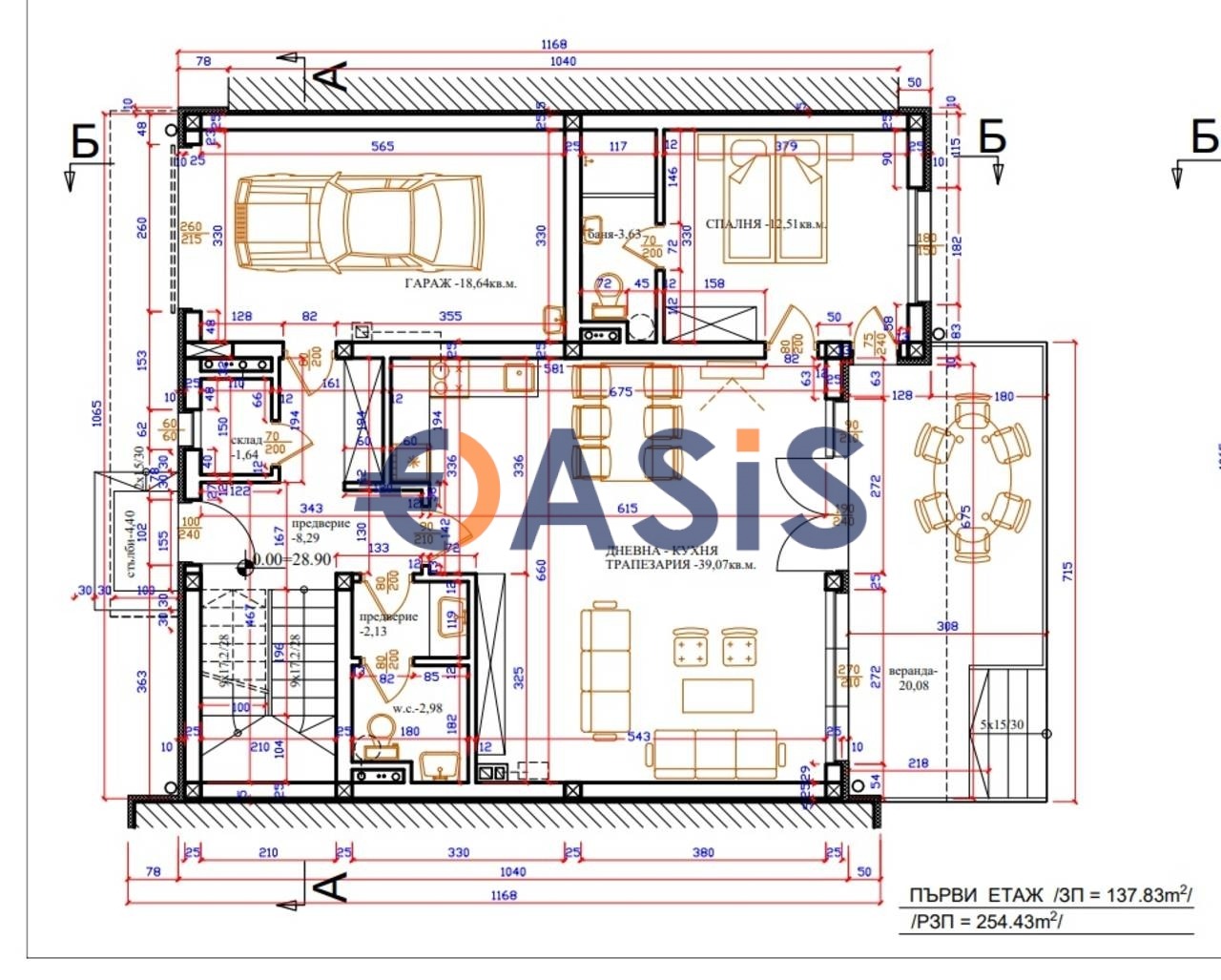 Обща площ: 254.43 кв. м., парцел 652 кв. м