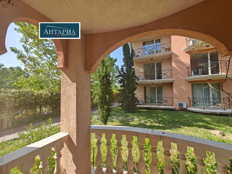 На първа линия до плаж Златна рибка. Обзаведен двустаен апартамент с площ от 65 кв.м., на партерен етаж, разпределен в антре, дневна с кухненски бокс, самостоятелна спалня, баня с тоалетна и два балкона. Изложението е югозапад, имотът е готов за ползване, без нужда от ремонт, с висока доходност при отдаване под наем.