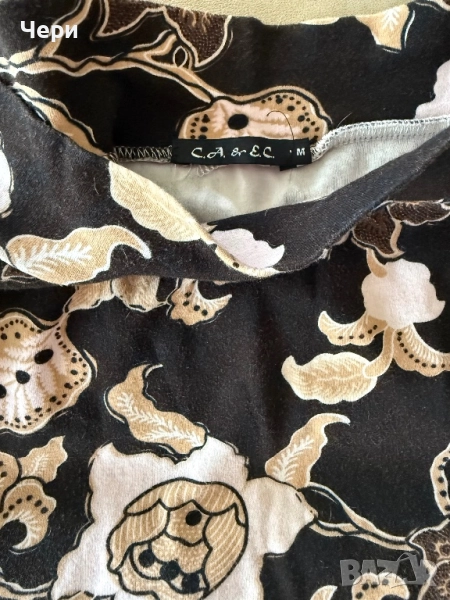 Дамска блуза с дълъг ръкав на българска марка С.А. & Е.С. в размер М, 100% памук. Обличана е броени пъти, в идеално състояние и есенни цветове и мотиви.