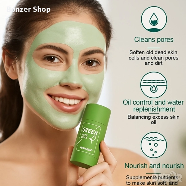 Маска за почистване на лице със зелен чай под формата на стик → Обява 51843898