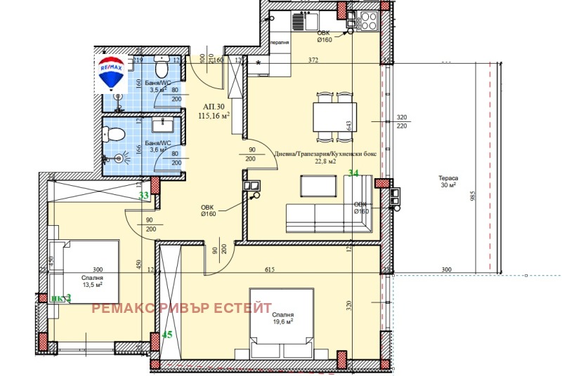 - тераса 30 кв.м.