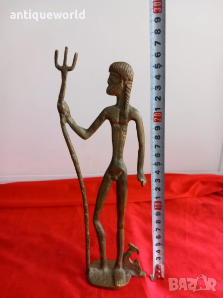 Красива Висока Стара Бронзова Статуетка на Бог ПОСЕЙДОН, Богът на Морето.Гръцка Митология.