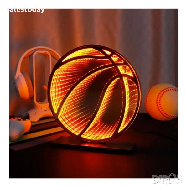 Светеща табела баскетболна топка, огледална, Ø23x24 см