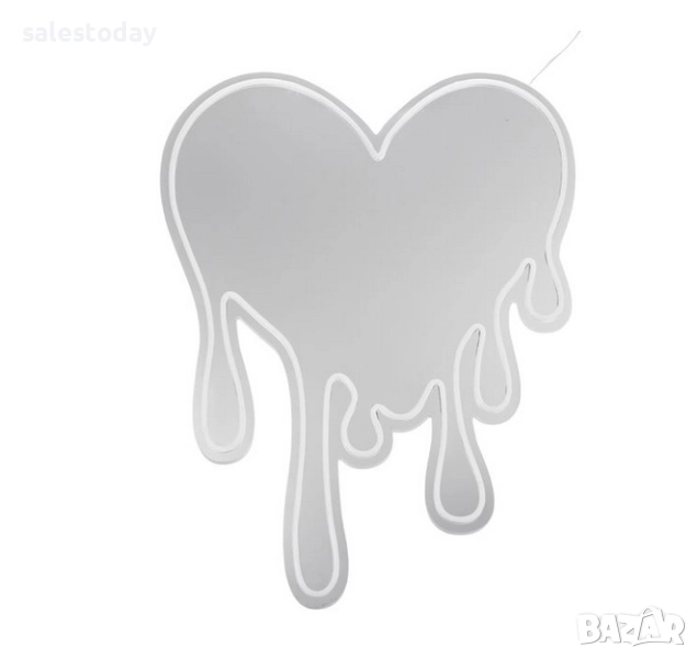 Огледало във форма на сърце с неонов LED кант, 4W, 0.8A и „разтопен“ дизайн в долната част.