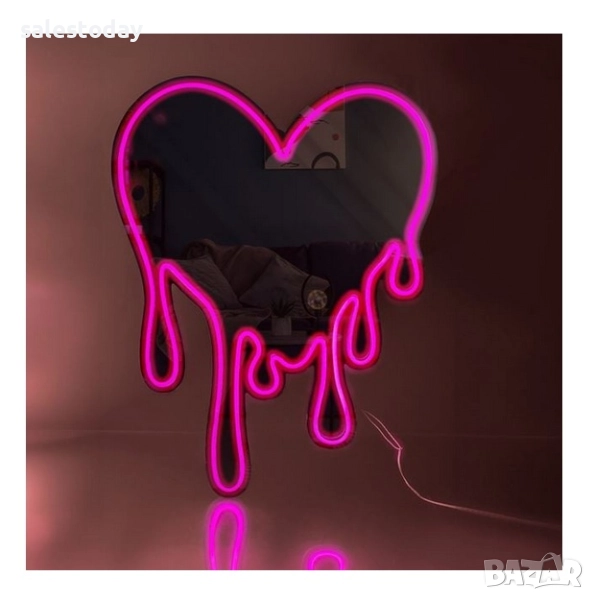огледало с неоново осветление, във форма на разтопено сърце, 45.7x61 cm