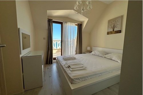 Представяме ви светъл и уютен двустаен апартамент, разположен в затворен комплекс, на първа линия до морето непосредствено до плажа на , Аспарухово, Варна.