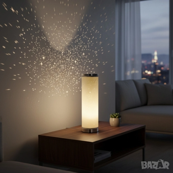 Светлина: топло бяло (Warmweiß) Тип крушка: E14 (включена) Технология: LED; Какво получавате: 1 брой LED настолна лампа със „звезден ефект; 1 брой LED крушка E14; Транспортна опаковка; Гаранция: 12месеца.