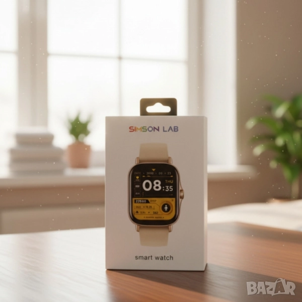 Модел: SIMSON LAB Smart Watch Дисплей: цветен, пълноразмерен Функции: крачкомер, калории, пулсомер, известия за обаждания и съобщения Свързаност: Bluetooth, съвместим с Android и iOS Батерия: издържливост няколко дни с едно зареждане Каишка: метална. 6. Какво ще получите 1 × Смарт часовник SIMSON LAB 1 х каишка; 1 × Заряден кабел 1 × Ръководство за употреба Гаранция