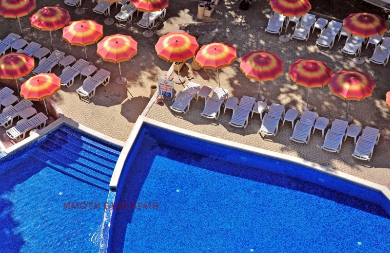 - Просторен открит басейн с тераси за слънчеви бани, шезлонги и чадъри.
