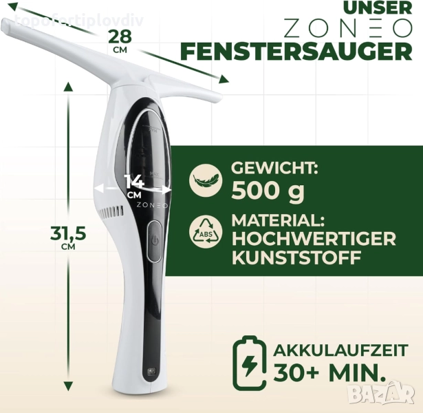 Уред за почистване на прозорци ZONEO Window Vacuum,Гаранция
