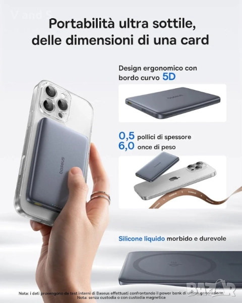 Външна батерия Baseus Picogo AM41, ултра тънка 10000mAh Qi2 Magsafe външна батерия 15W безжична, бър