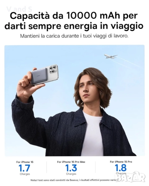 Ултратънка и преносима батерия MagSafe с капацитет 10 000 mAh】С дебелина само 0,5 инча, тази преносима батерия с размер на кредитна карта се побира лесно в джоба ви, предлагайки капацитет от 10 000 mAh – достатъчен за зареждане на iPhone 16 до 1,7 пъти. Идеална за пътуващи и пътуващи до работа, лекият дизайн (тежи по-малко от повечето смартфони) осигурява захранване за целия ден, без да добавя обем.