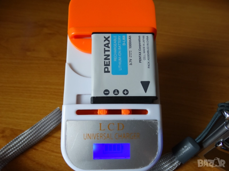 В комплект с оригиналната си издръжлива батерия, оригинална връзка за ръка, SD памет 4GB и качествено зарядно за фотобатерии с индикация на зарядния процес !
