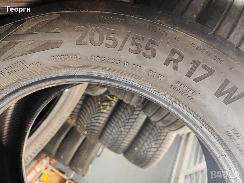 4бр. Continental, 205/55/17 ДОТ 2621, 6.1mm/5.8mm грайфер. Гумите са перфектни, без забележки, проверени са машинно за кривини, балони!! Разполагаме с всякакъв размер нова и втора употреба гуми от 14-22 цола за автомобил, джип и бус.