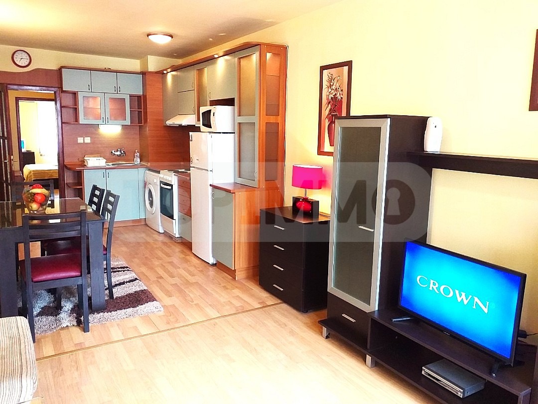 Напълно обзаведен и оборудван с всичко необходимо за едно домакинство: два климатика, два телевизора LED, хладилник, печка, микровълнова, аспиратор, пералня, посуда и др.