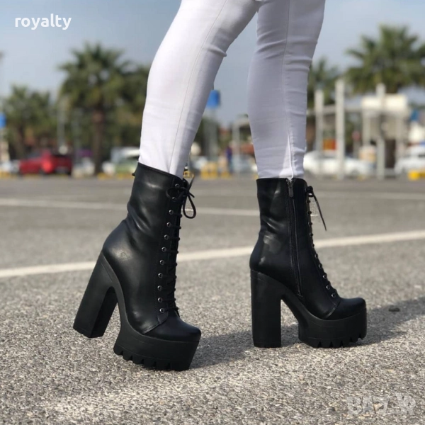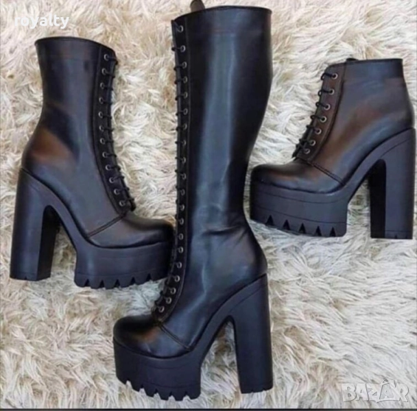 Боти на ток - черна кожа с черно ходило → Обява 51847263