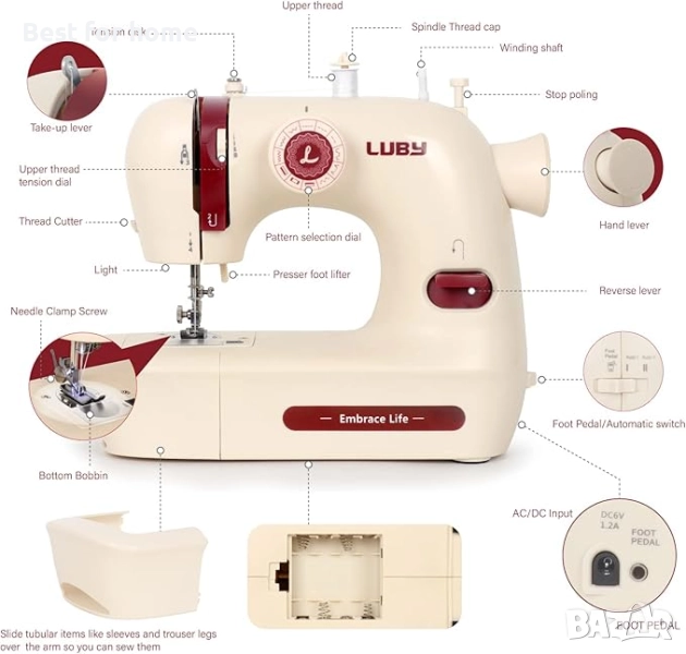 МАЛКА И ПРЕНОСИМА: Преносимият размер и тегло ви позволяват да я вземете навсякъде, например на курс по шиене, дълго пътуване и т.н. Можете да притежавате една шевна машина LUBY за множество цели.