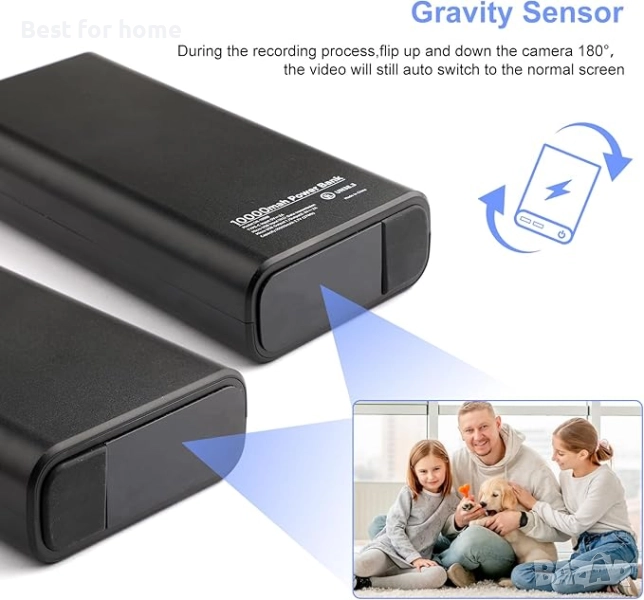 Основни домакински принадлежности Камера и спътник за пътуване: Тази камера се предлага с 64GB SD карта, осигуряваща достатъчно място за съхранение на видеоклипове (поддържа до 256G TF карти). Тя осигурява скрито наблюдение за домове и офиси. Също така е идеалният спътник за вашето оборудване за пътуване на дълги разстояния, поддържайки вашата външна батерия готова за зареждане на телефони и други устройства навсякъде.