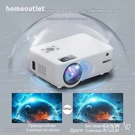 WiFi bluetooth проекторът е съвместим със системи IOS/Android/Windows.