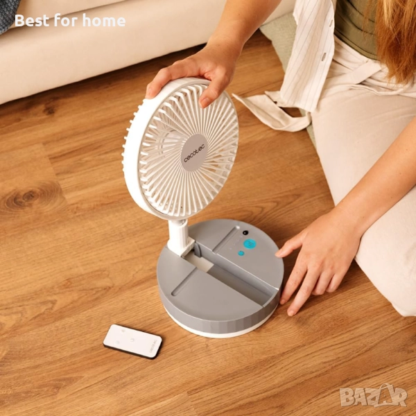 Cecotec - EnergySilence 800 FoldAir Преносим телескопичен вентилатор с управление - диаметър 20 см, сгъваем и телескопичен, батерия 7200 mAh, 4 скорости, дистанционно управление, автоматично осцилиране