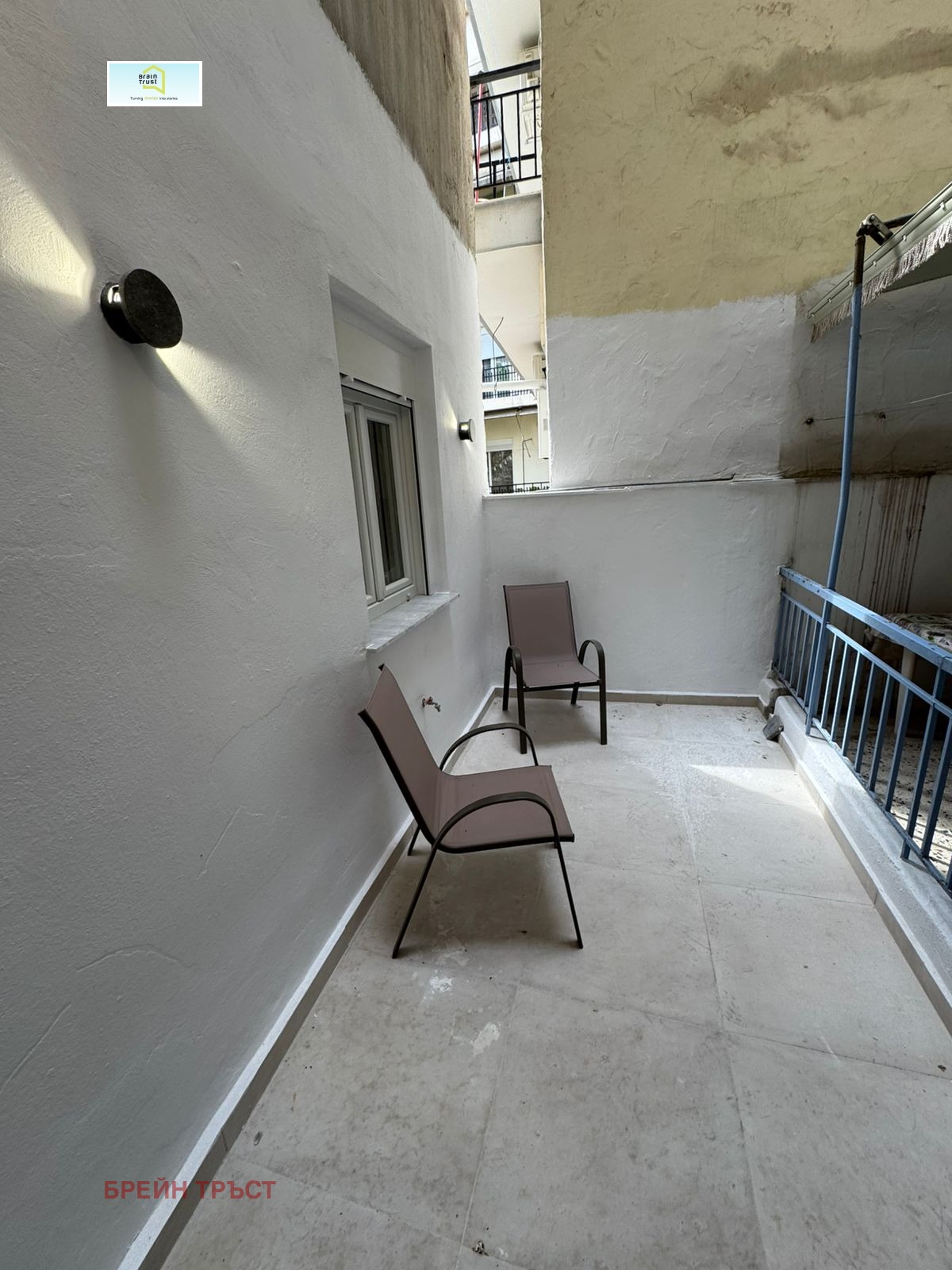 Brain Trust Ви представя чисто нов двустаен апартамент в историческия център на Солун. Жилището е 47,35 кв.м. и се състои от кухненски бокс, холна част и трапезария в основното помещение, отделна спалня и баня с тоалетна. От хола и спалнята се излиза на тераса.
