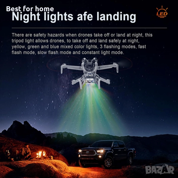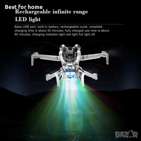 LED колесникът е предназначен за дрон DJI Mini 4 Pro. Той ви помага да имате по-добра видимост към заобикалящата ви среда, когато летите или излитате и кацате в тъмната нощ.