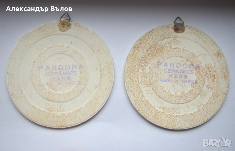 Две стари подложки за чаши или декорация за стена Pandora Ceramic ръчно направени гръцки → Обява 51848070