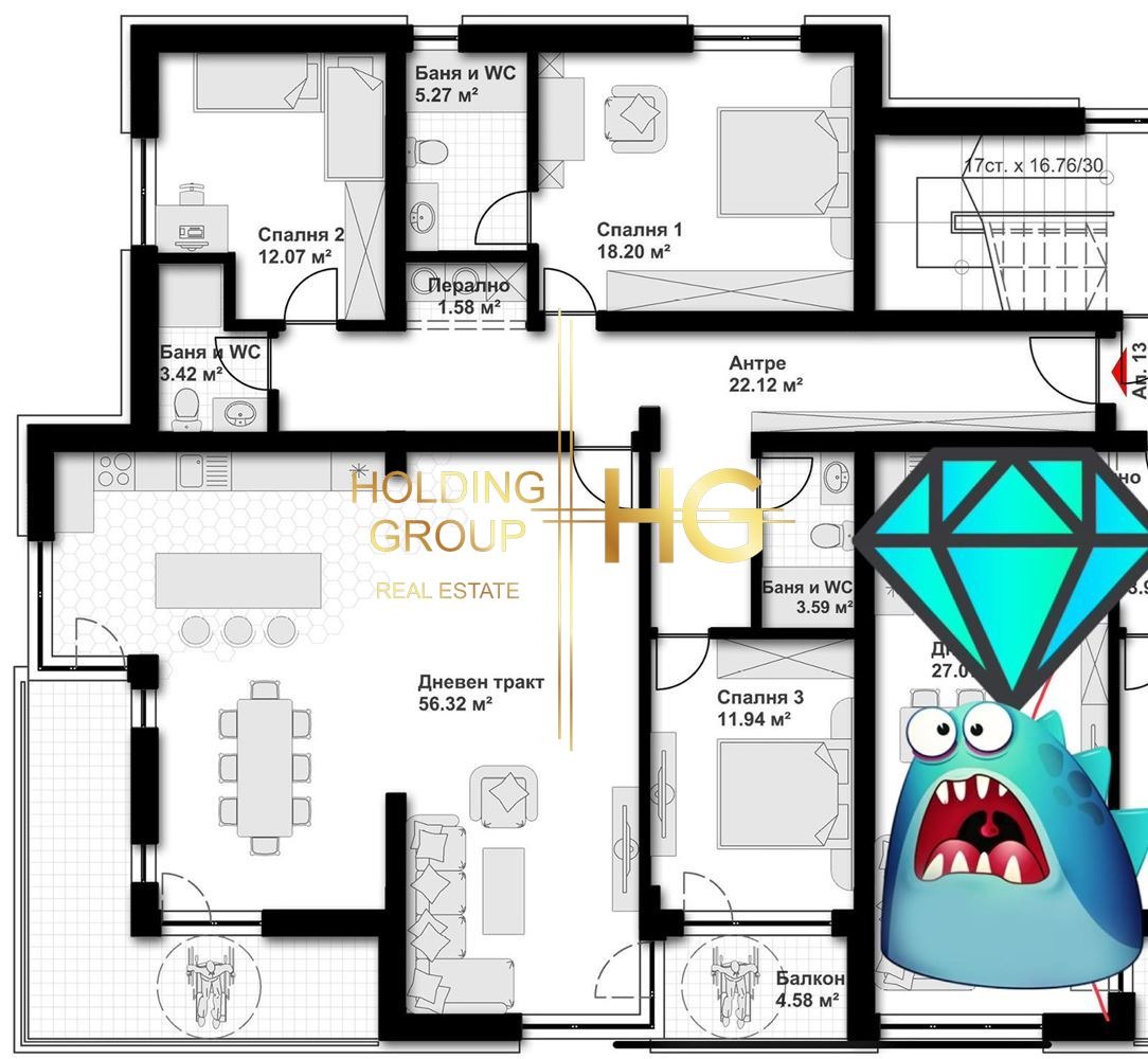 HOLDING GROUP Real Estate представя четеристаен апартамент в кв.Владиславо - в района на Джъмбо