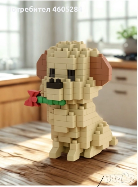 Очарователен конструктор, с който ще сглобите сладко кученце, държащо роза в уста! Идеален за подарък или като красива декорация у дома.
