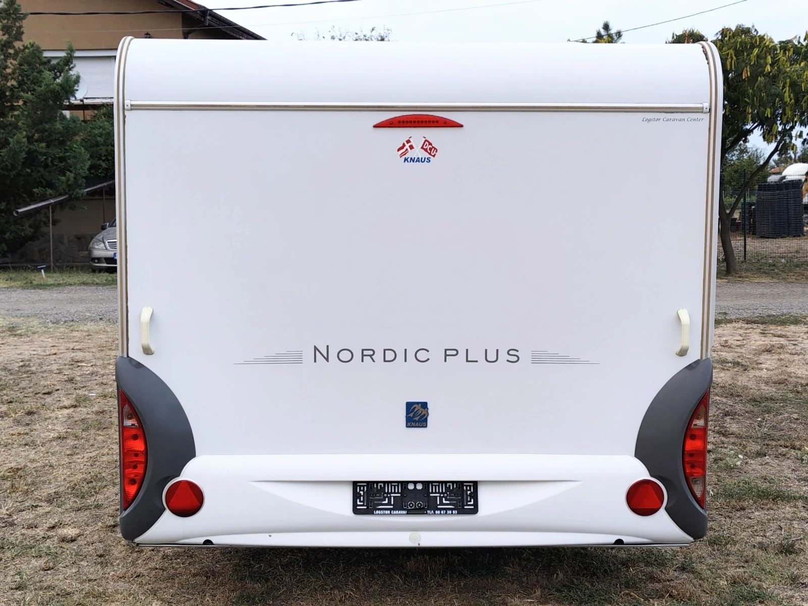 ЗАРА КАМП ЕООД Ви представя прекрасния KNAUS Nordic Plus 580 2007 година. Широчината е възможно най-широката 2. 50м. Дължината е 7м с теглича или чиста, използваема площ 5. 80м. Караваната е зимно изпълнение и се намира в абсолютно перфектно състояние, без течове, удари или лоши миризми. Всички уреди се тестват предварително и работят безупречно ! Размерите на този KNAUS му позволяват освен за мобилно къмпингуване и почивки в планината и язовири, така и за екскурзии в чужбина или стационарно позициониране на вашият личен имот. ---------------------------------------------- ---- -------- РАЗПРЕДЕЛЕНИЕ: В предната част е разположено П-образно сепаре което се трансформира в спалня за двама или трима. В средната част са разположени кухненския бокс, гардеробна и хладилника, който е възможно най-големия с отделна камера от хладилната част. В задната част е разположено френска спалня с подматрачна рамка и багажно отделение под нея. Просторна баня и тоалетна ! Възможност за ЛИЗИНГ с гарантирано най-добри условия, с равни месечни вноски ! ! ! ---------------------------------------------- ---- --------- ОБОРУДВАНЕ: ** Автоматичен Мувър ENDURO **