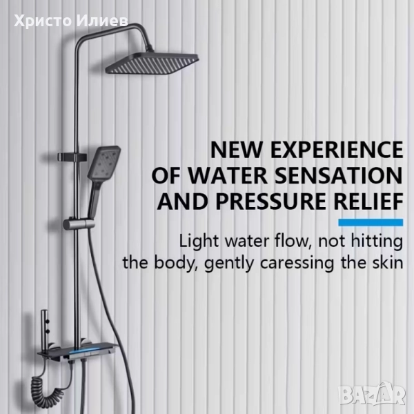 Луксозна Душ система със стъклен смесител 4 функции за вода