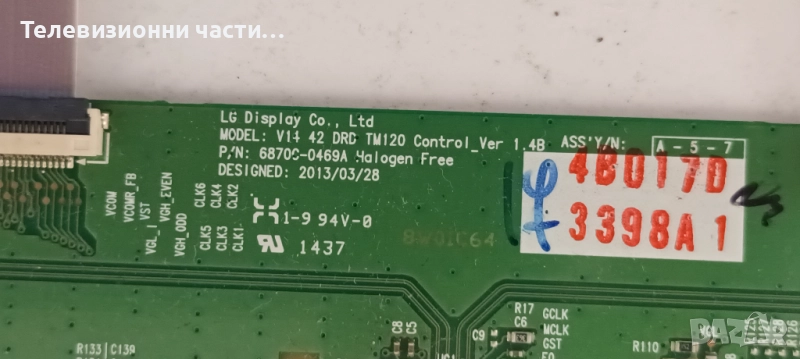 T-Con Board 6870C-0469A Halogen Free V14 42 DRD TM120 Control_Ver 1.4B - 30лв / 15.34 евро