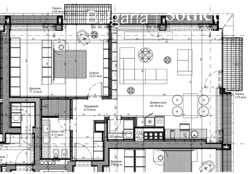 Апартаментът се предлага на шпакловка и замазка, като към него има изготвен дизайнерски проект за бъдещите собственици.