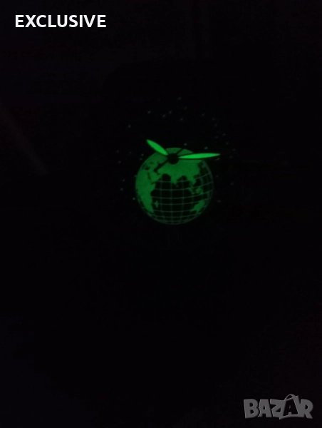 Глобален/лунен циферблат със светещи детайли.