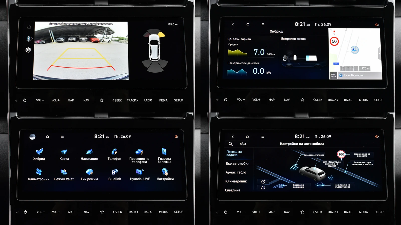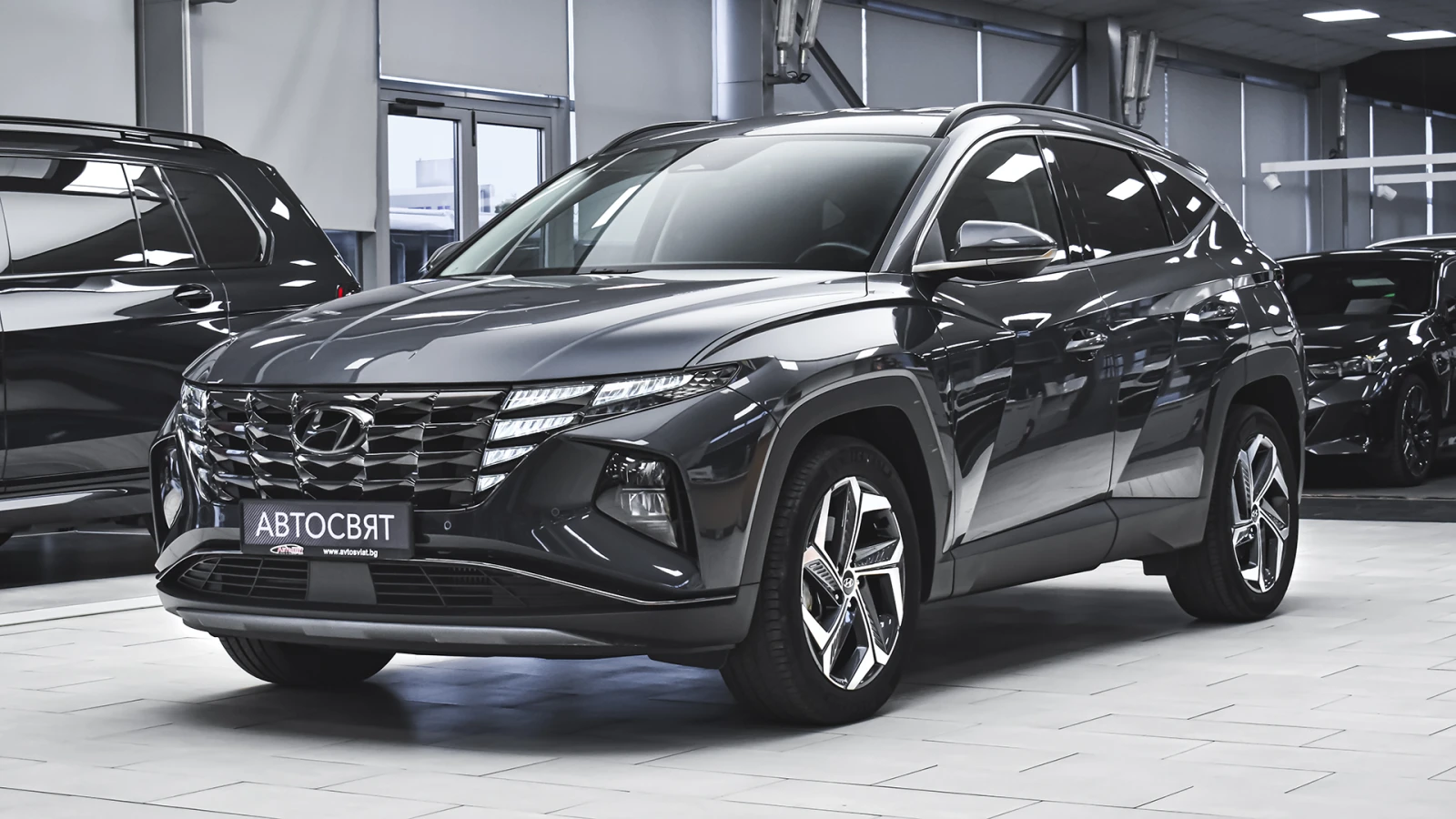 Автосвят ООД - официален представител на Opel и Mazda, предлага на Вашето внимание проверен автомобил Hyundai Tucson 1. 6 T-GDi EXELLENCE Hybrid Automatic Предимства: - 12 месеца или 20 000 км пробег гаранция; - безплатна пътна помощ за Р България в рамките на гаранцията; - напълно обслужен. Допълнителни услуги: - лизинг; - сътрудничество при регистрация; - възможност за обратно изкупуване; - посредничество при застраховане; - посредничество при завеждане на щети при застрахователя. Външен цвят Dark Knight Metallic ABS (Anti-block System): Антиблокираща система на спирачките ESP (Electronic Stability System): Eлектронна система за динамичен контрол на траекторията DBC (Downhill Brake Control): Система за контрол при спускане HAC (Hillstart Assist Control): Система за контрол при потегляне по наклон TSA (Trailer Stability Assist): Система за стабилизиране при теглене EPB (Electronic Park Brake): Електрическа паркинг спирачка + Autohold MCB (Multi Collision Braking): Система за предотвратяване на вторичен сблъсък BAS (Brake Assis System): Електронна асистенция на спирачното усилие при екстремно спиране VSM (Vehicle Stability Management): Система за контрол на стабилността ESS (Emergency Stop Signal): Автоматично включване на аварийните светлини при внезапно спиране TPMS (Tire Pressure Monitoring System): Система за активно следене налягането на гумите FCA-JX (Front Collision Assist-Junction): Автономна аварийна спирачка с разпознаване на пешеходци/автомобили/велосипедисти и превенция на сблъсък в кръстовище LKA (Lane Keep Assist): Система за поддържане на пътната лента LFA (Lane Following Assist): Система за активно поддържане на пътната лента LVDA (Leading Vehicle Departure Alert): Система за предупреждение при тръгване на автомобила отпред DAW (Driver Attention Warning): Система за разпознаване на умора при водача HBA (High Beam Assist): Система за автоматично превключване между къси и дълги светлини BCW (Blind Spot Collision Warning): Система за следене на мъртвата точка RCCW (Rear Cross Collision Assist): Система за следене на трафика зад автомобила HDA (Highway Driving Assist): Система за автономно шофиране по магистрали (само за 7DCT) ROA (Rear Occupant Alert): Система за предупреждение със звуков и светлинен сигнал при наличие на пътници на 2-ри ред седалки SEA (Safe Exit Asist): Система за следене за наближаващ автомобил и автоматично заключване на задните седалки Две фронтални въздушни възглавници за предните места Странични въздушни възглавници за защита на тялото за предните места Въздушни възглавници тип завеса за защита на главите за предните и задните места Предна централна въздушна възглавница за предните места Триточкови и инерционни предни и задни предпазни колани Регулируеми по височина предни предпазни колани Система ISOFIX за триточково закрепване на детска седалка за страничните места на задната седалка Усилващи греди от високоякостна стомана във вратите за защита при страничен удар MDPS: Сервоусилвател на волана с електронно управлeние Drive Mode Select: Система за промяна режима на шофиране (само за 7DCT) ASCC (Adaptive Smart Cruise Control): Система за поддържане на зададена скорост и дистанция спрямо автомобила отпред и Stop & Go функция ISLA (Intelligent Speed Limit Assist): Система за автоматично регулиране на зададена скорост чрез разпознаване на пътните знаци SBW (Shift By Wire): Превключване на скортната кутия чрез бутони Пера за управление на скоростната кутия от волана Дигитално табло Super Vision с 10, 25 цветен дисплей SVM (Surround View Monitor): Система от камери с висока резолюция за изобразяване на 360 градусов обзор около автомобила с възможност за детайлен преглед RDW (Parking Distance Warning): Система за помощ п