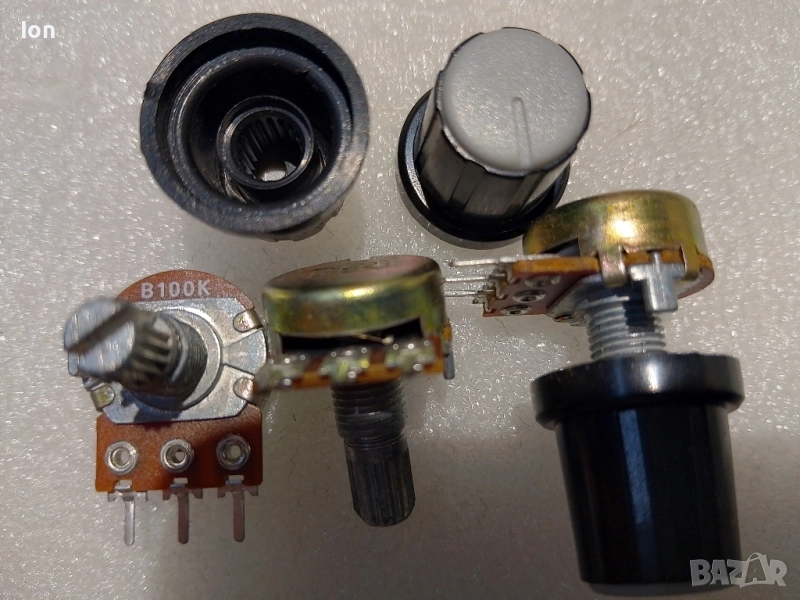 100кОма линейни потенциометри с пластмасови копчета → Обява 51850375