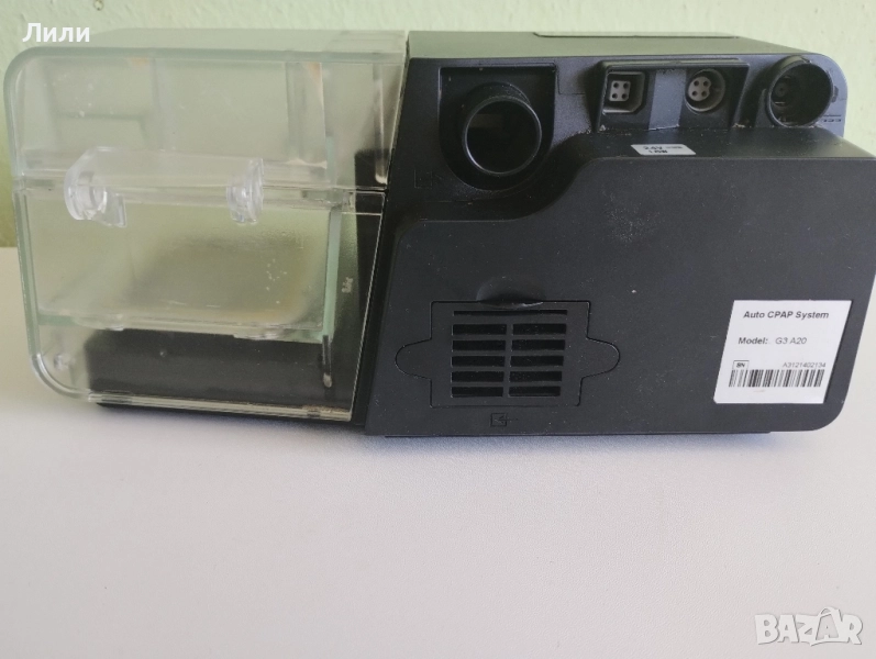 Продава се използван апарат за сънна апнея, върви със захранващ кабел, сива тръба за въздух. Допълнително ще Ви е необходима маската за лицето. Изпращам заедно със чантичката. По контейнера за вода има леко пожълтяване от котлен камък, но може да се почисти. Уреда си работи отлично.