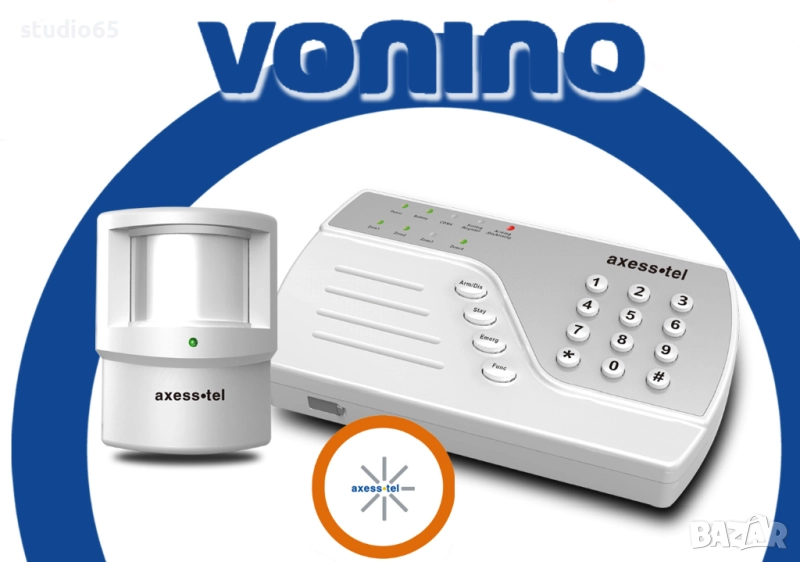 Безжична GSM алармена система Vonino от серията AxessTel e подходяща за дома, офиса, гаража и други.