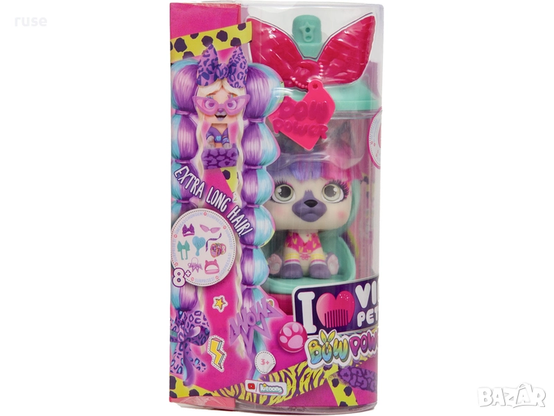VIP PETS BOW POWER пристига смел, сладък и стилен. Кученцето от Bow Power е с дълга цветна коса, на която децата могат да направят красиви прически. Комплектът включва и 8 аксесоара, като диадемка, очила, гребен и други.