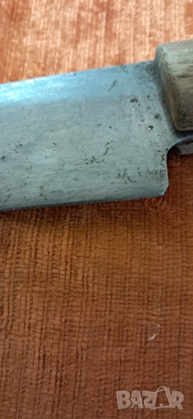 Стар нож ,състояние същият е здрав без удари по острието, читава дървена без удари, луфтове, хлабини, пукнато, сцепено и т.н.Нуждае се от заточване и е готов за работа. Цената не подлежи на коментар.