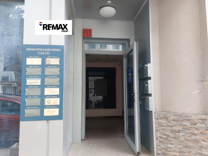 RE/MAX ексклузивно отдава офис в идеален център, намиращ се в реномирана офис сграда с денонощна охрана, видео наблюдение и контролиран достъп. Еностайният имот с кухенски бокс и комбиниран санитарен възел е с панорамни прозорци и голяма тераса. Сградата е с перфектни общи части, асансьор и портиер. Подходящ е и за жилищни нужди. Намира се в идеален център на метри от Дирекция на полицията и е с изложение към църквата Св. Богородица. Отдава се с едногодишен договор. Ключ в офиса! Огледи само в делнични дни!